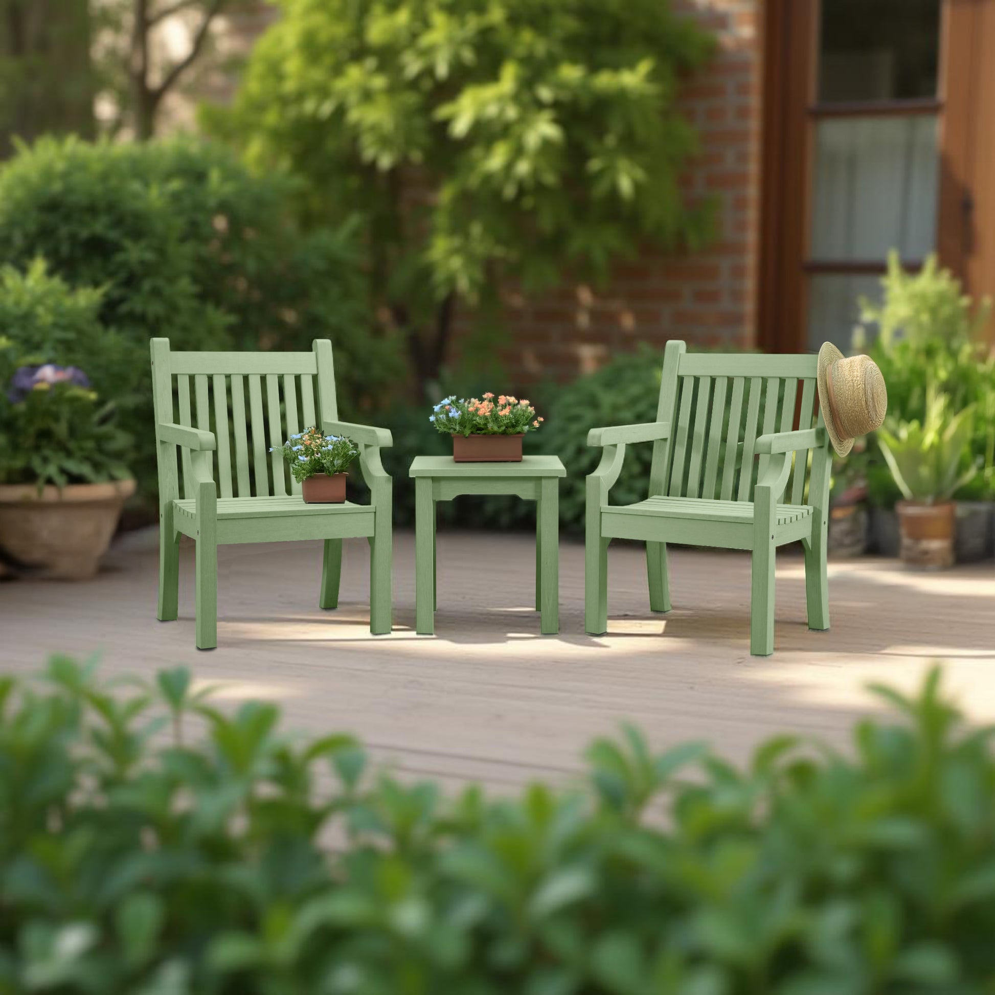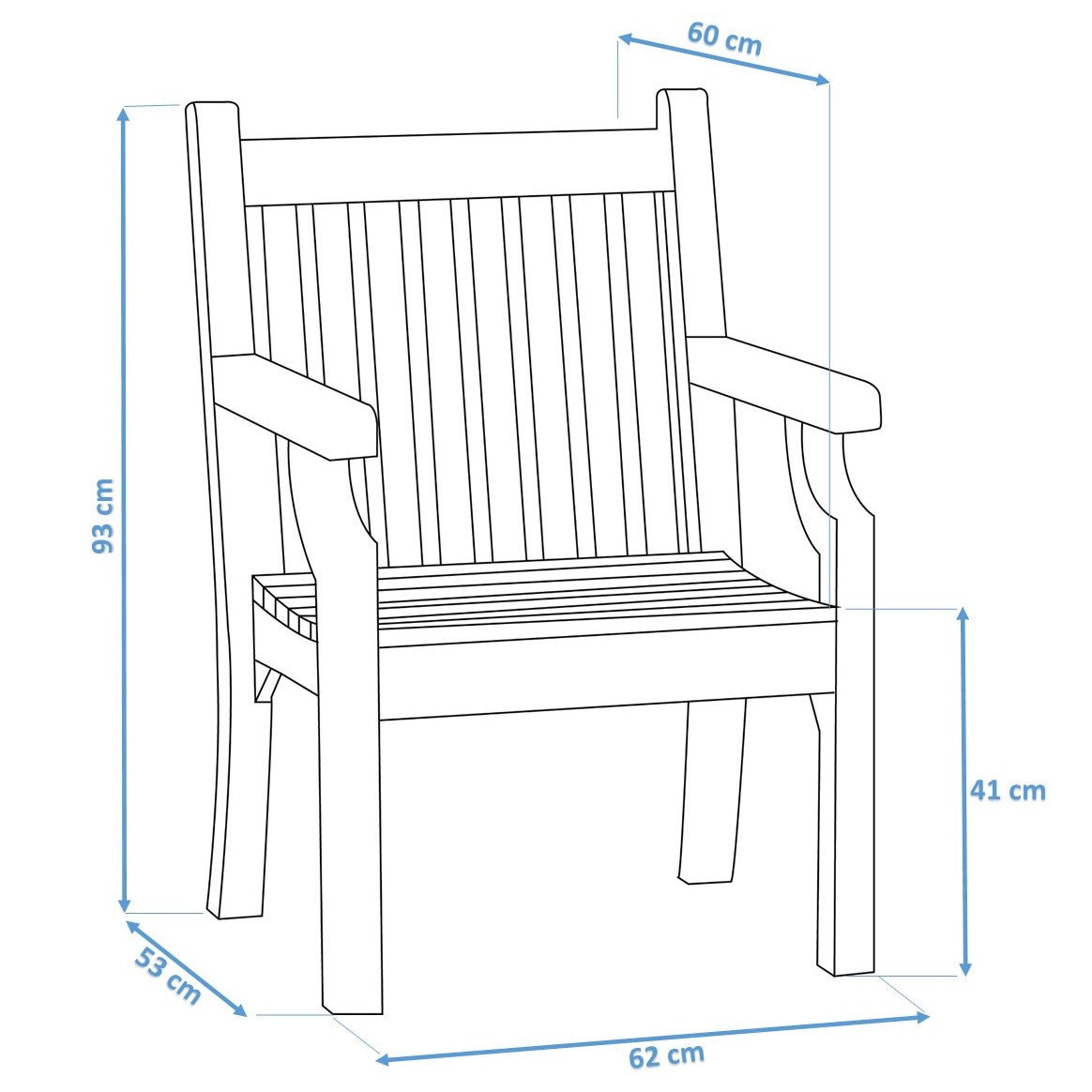 With its classic straight slats, gently curved seat, and smooth armrests, this chair combines traditional charm with modern comfort. Whether it’s placed on a sunny patio, a shaded garden corner, or a balcony, it adds an instant touch of style and sophistication.
